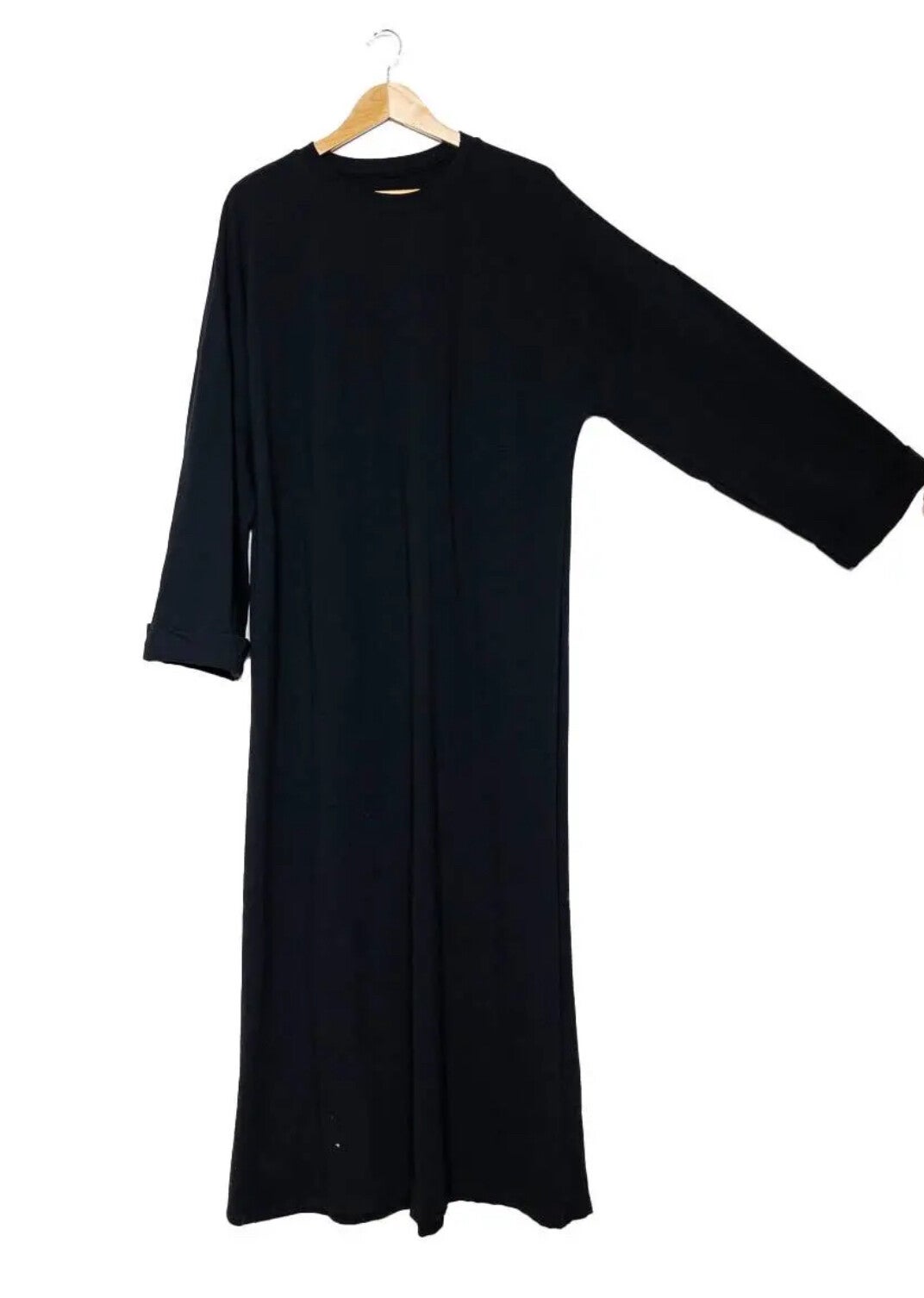 Losse en comfortabele jurk van dikke katoen met een klassieke ronde hals en lange mouwen. Ideaal voor een casual en elegante stijl. - Lengte: 140 cm- één maat, te dragen tot een L- 100% Katoen
